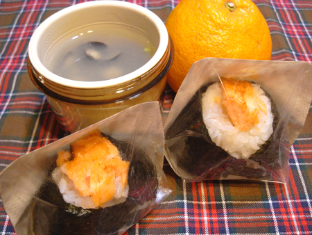 冷凍庫で鮭としじみを発見したので、米を炊いておにぎり+味噌汁にしてみた。