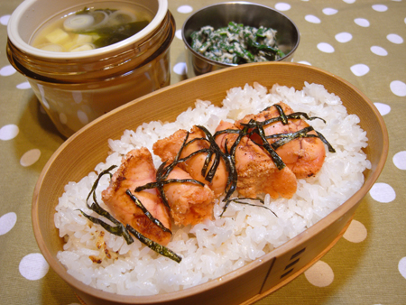 菜の花とか入れたらよかったかな、でも桜でんぶがのってるるからよしとしよう。