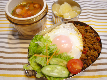 2段式だとご飯とおかずが混ざったりしないので、なかなかいい感じだ。