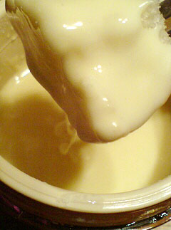 写真奥のスープカップにチーズフォンデュの材料を入れて、
