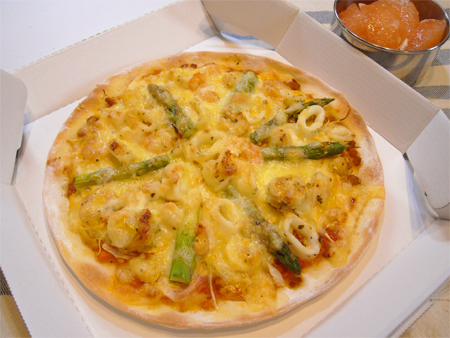 ホワイトソースとケチャップをあわせたソースがベースのピザ。