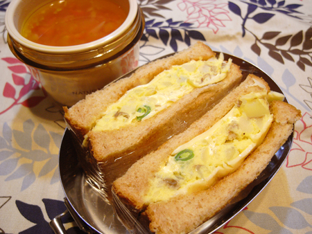 いんげん、玉ねぎの入ったポテトサラダでサンド弁当。