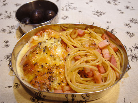 トマトグラタンとペペロンチーノ弁当