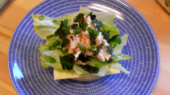 茹で鶏を明太子とマヨネーズであえたのをメインで挟んどきましたよ。