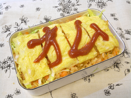 小さい弁当箱だと詰めるの大変だね、なんだかゴチャゴチャしていまいち。