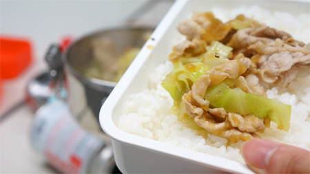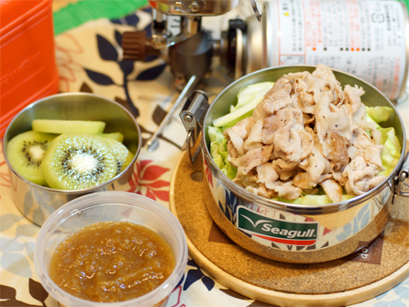 生のキャベツと軽く炒めた豚肉をお鍋にかわる弁当箱につめて、会社で蒸し焼きにして完成させるという、それも給湯室を使わずガスコンロも持参でね。こんな弁当ありでしょうか?ダメでしょか・・。