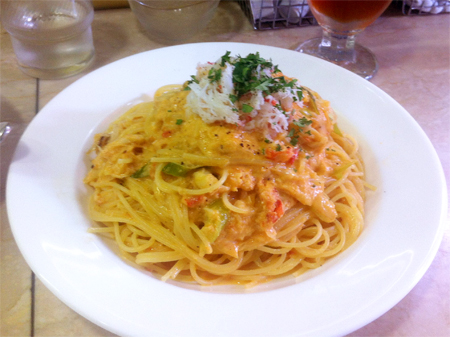 蟹は沢山はいっていてさすが築地といったところ。しかし蟹はあんまり加工しないでそのまんま食べるのが一番だよなとか蟹のパスタ頼んでおいて本末転倒なことを思ったり。