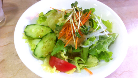 この日はあんまり食欲がなかったんだけど、ついつい大盛り(+200)を頼んでしまう食いしん坊の悲しい性。カルボナーラとありましたが卵ははいってないのか?すくないのか?あんまり感じず蟹クリームといったところ。長ネギもはいっていてちょい和風なパスタでした。