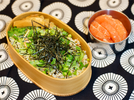 薬味たっぷり鮭とワカメの玄米炊込みご飯弁当